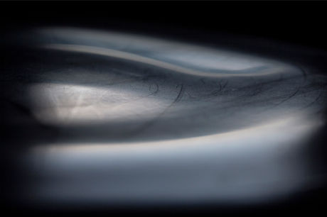 Das Licht spiegelt sich auf der Oberfläche und wird reflektiert. Es schält sich aus dem Schwarz heraus, modelliert neue Strukturen und macht das Verborgene der Oberfläche sichtbar. Der abgebildete Gegenstand löst sich auf und ist für den Betrachter nicht mehr zu erkennen.